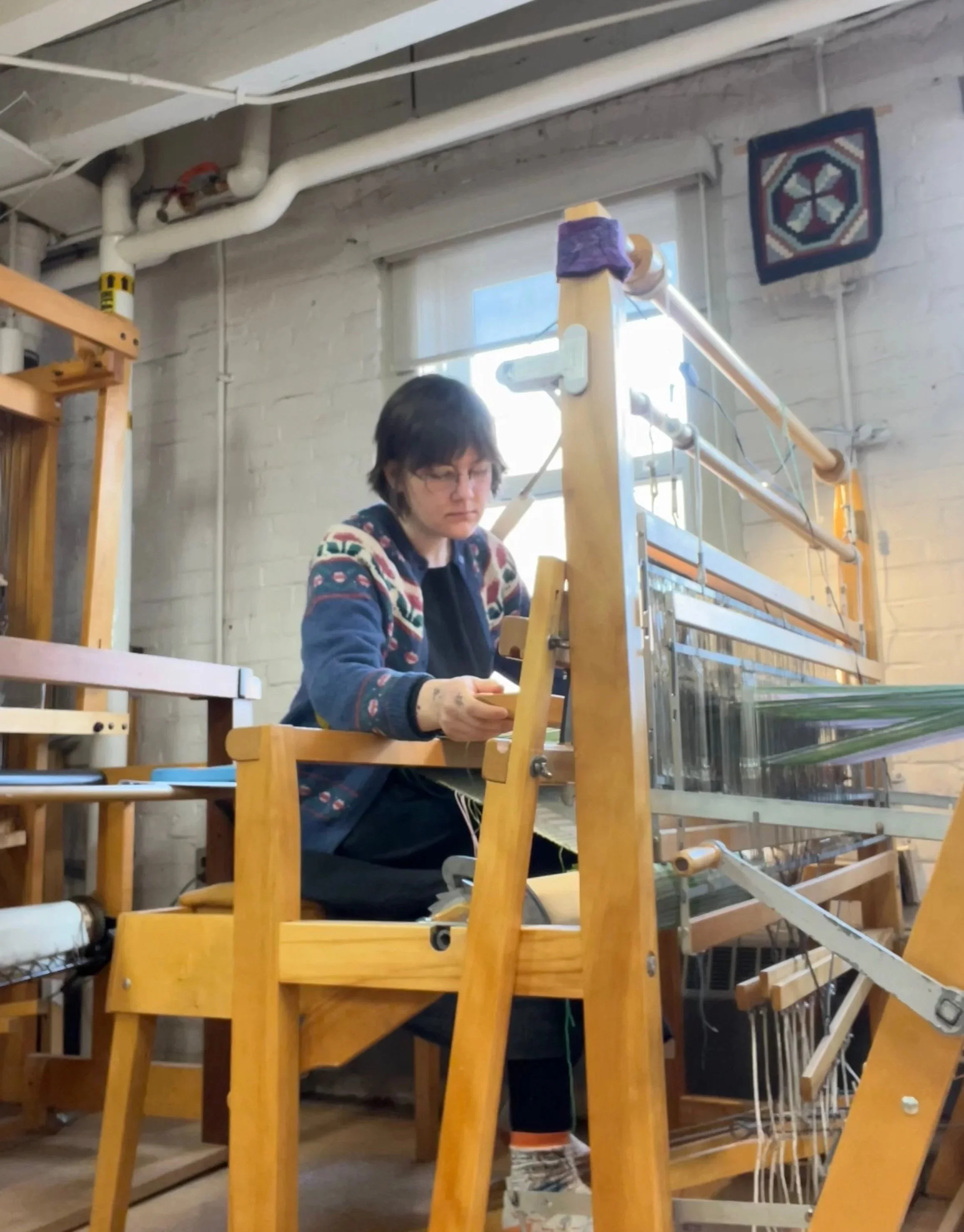 Moth Larkspur-Hansen (they/them) is a fibre artist and craftsperson whose material-based practice centres weaving, and natural dyes. They make soft yet sturdy heirloom textiles that are crafted slowly and with great care, meant to be used, loved for a lifetime, and mended when worn through.