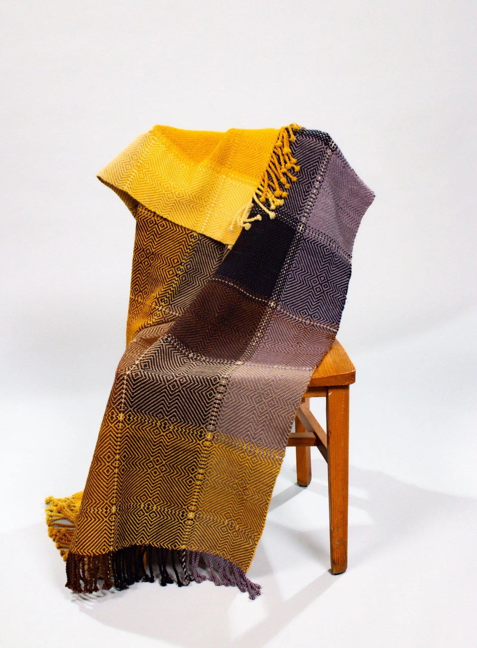 hand-woven and hand-dyed using exclusively naturally dyes, including marigold petals, black walnut nut husks, and logwood tree chips